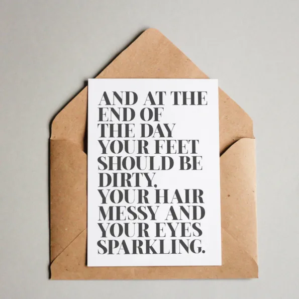 Am Ende des Tages sollten deine Füße dreckig, deine Haare zerzaust und deine Augen voller Glanz sein.