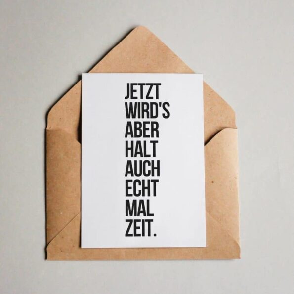 “Jetzt wird’s aber halt auch echt mal Zeit.” Tolle Postkarte mit minimalistischem Text