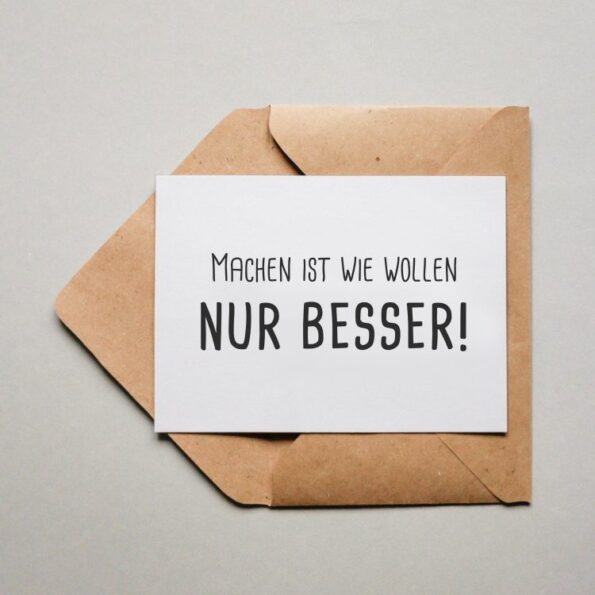 “Machen ist wie wollen – Nur besser!” – Minimalistische Postkarte