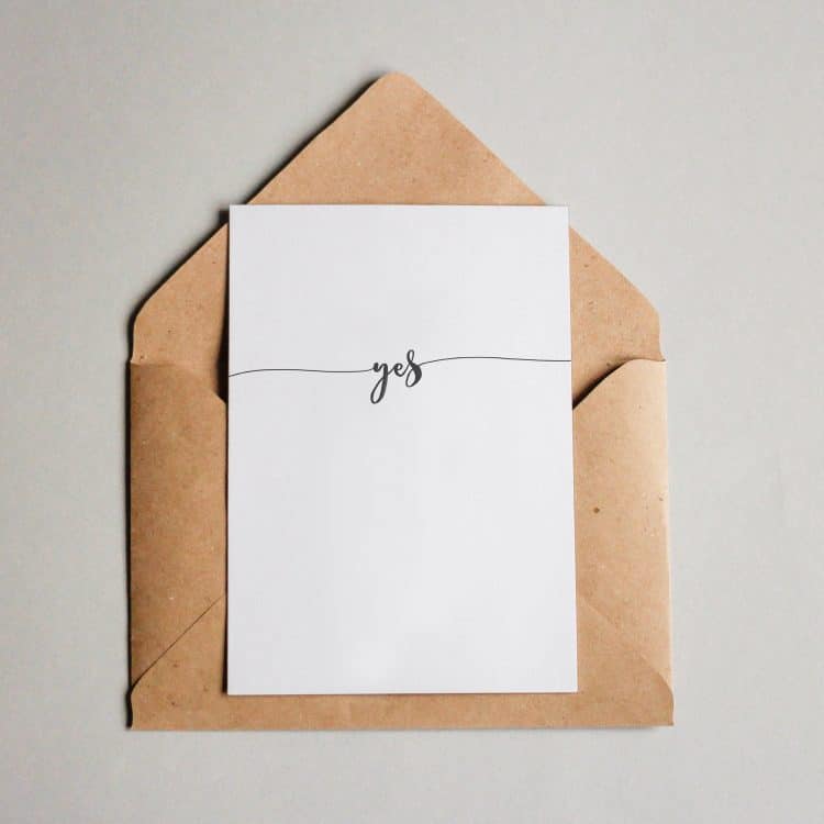 Schlichte Hochzeits-Einladungskarte, nur drei Buchstaben aber jeder weiss gleich bescheid 😉